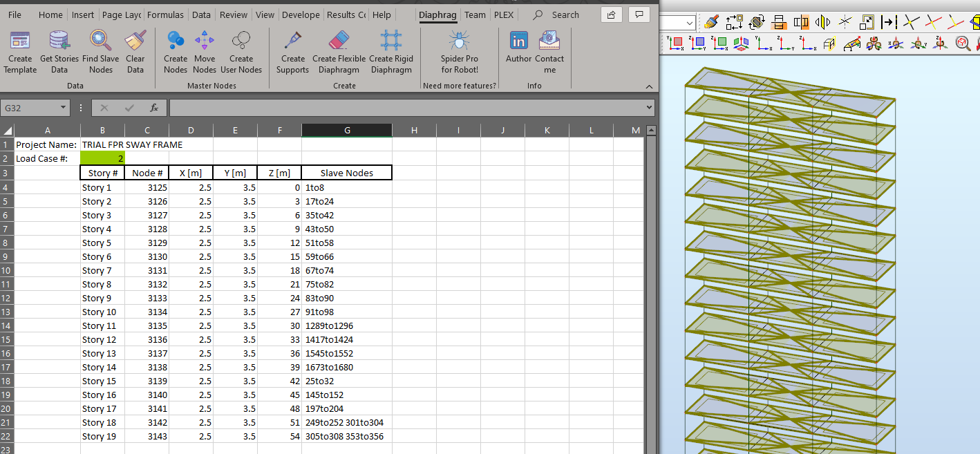 - Press Get Stories Data to get names of the existing stories and coordinates of the center of gravity of each story projected on the related floor slab level. The story will be processed if the weight of the story is above zero.