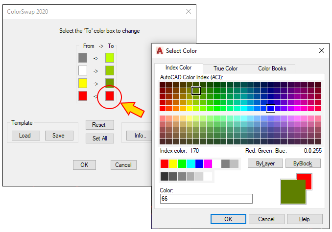 ColorSwap supports Index Colors, True Colors, Color blocks, colors within Mtext, Table Cell shading, and more.