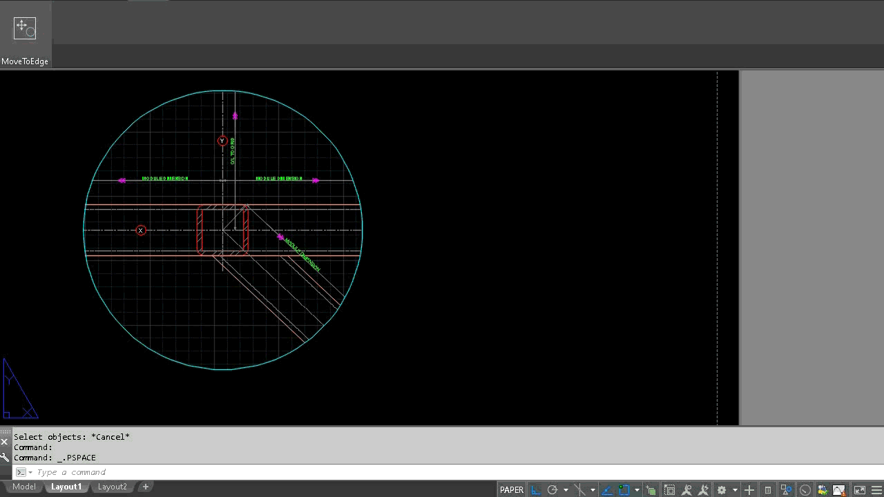 Moving objects towards the extents or edge of the active viewport is not an easy task, such that you have to create the outline of the specified viewport, put it on model space by using the PSPACE command, go back to the Model tab and locate the outline created, move your objects towards the outline created and go back again to Paper Space.