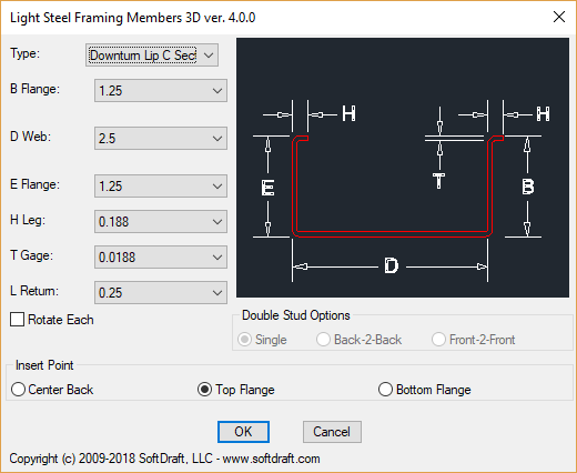 SoftDraft Light Steel Framing Members 2K 2D/3D version is a powerful tool for easily selecting and placing light steel framing members in your wall sections and details. Its intuitive dialog interface lets you quickly and easily create accurate and detailed drawings.