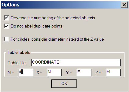 Through the dialogue box, it is possible to select whether to number the coordinates, which coordinates to draw (X, Y, or Z) and their color.