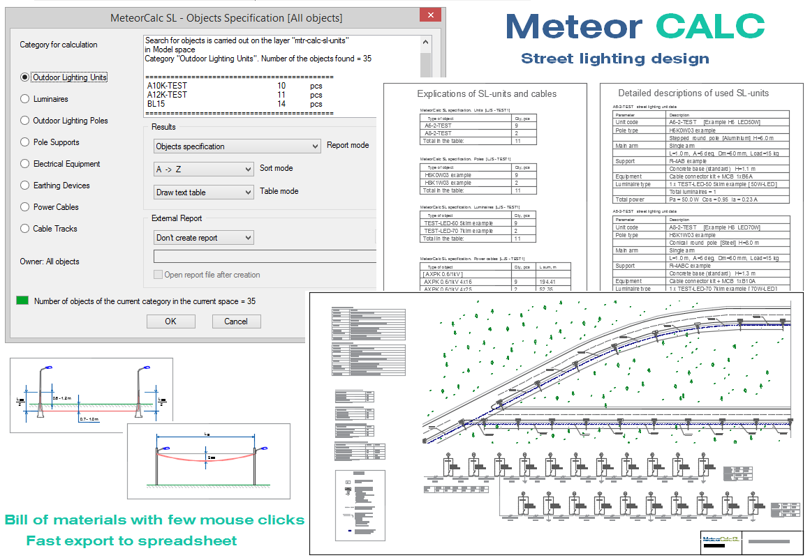 MeteorCalc SL is a powerful CAD plugin for designing electrical parts of outdoor lighting networks such as street lighting and tunnel lighting installations.