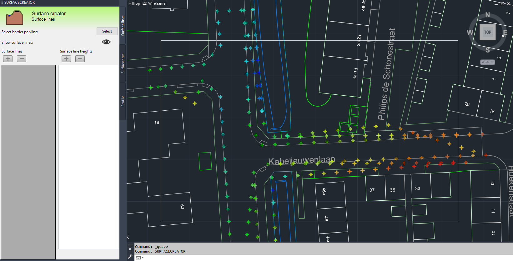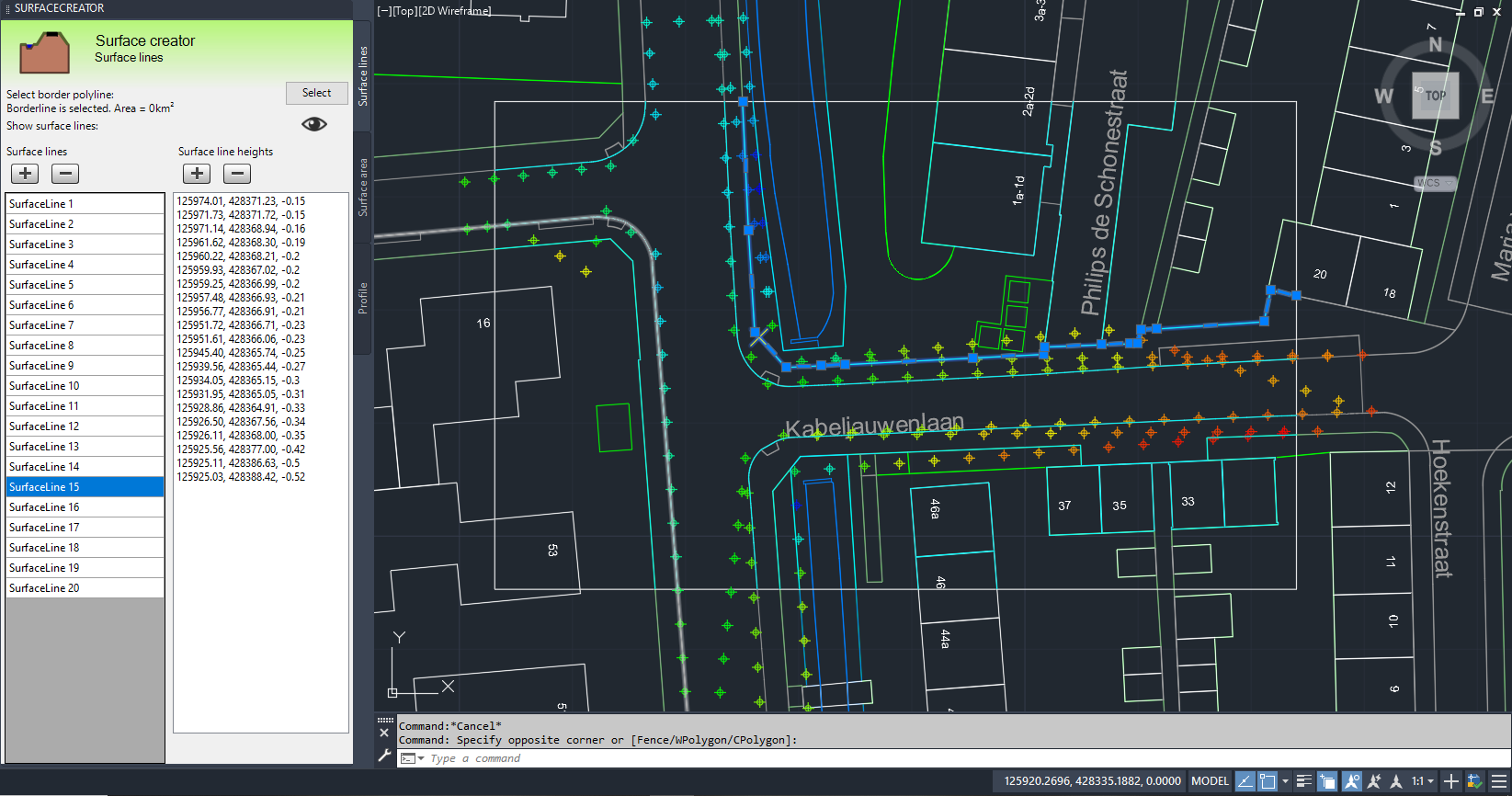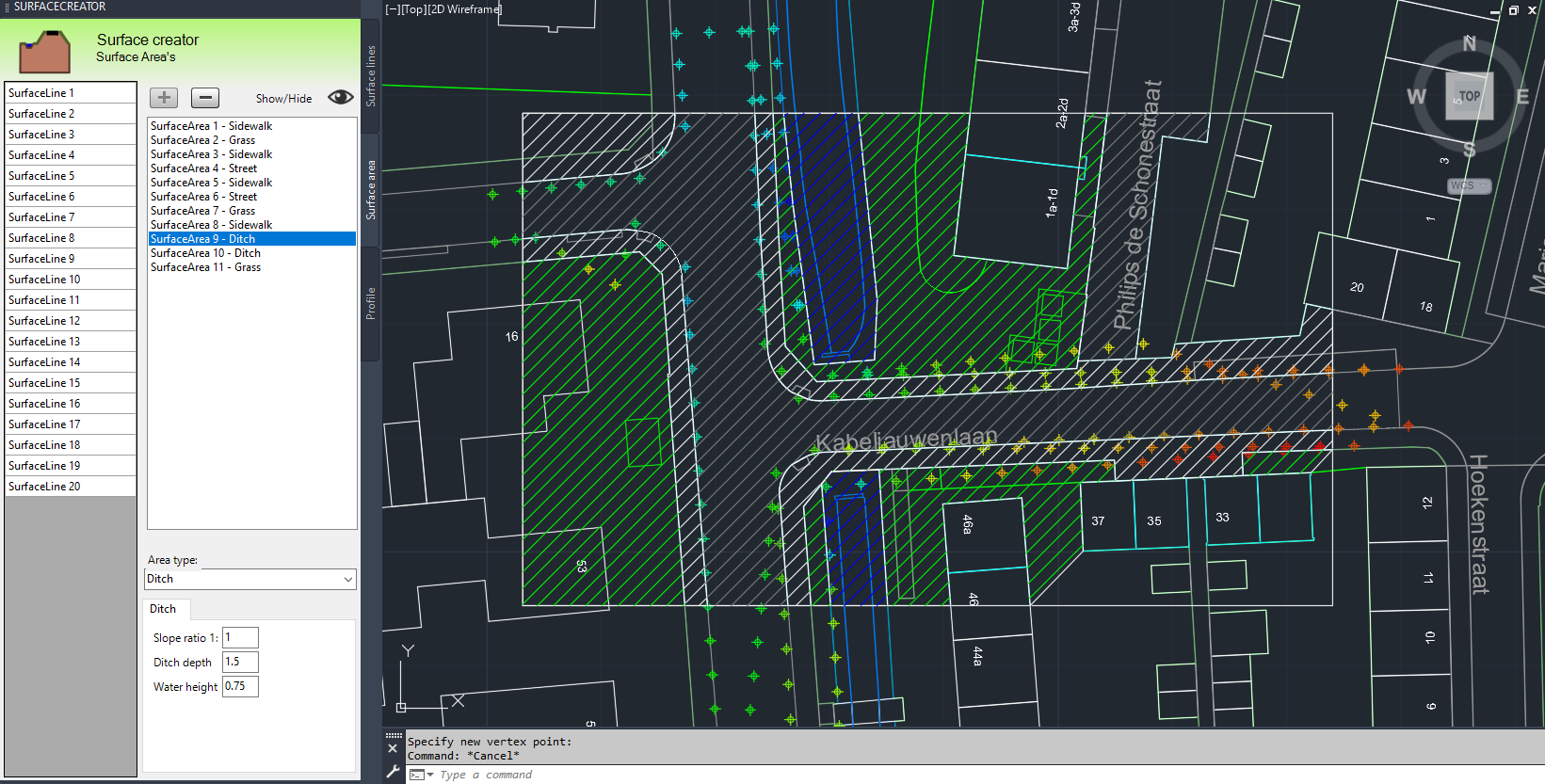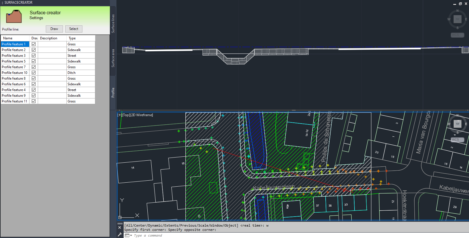 When these areas are crossed with a selected or drawn profile line a crosssection is generated at a location specified.