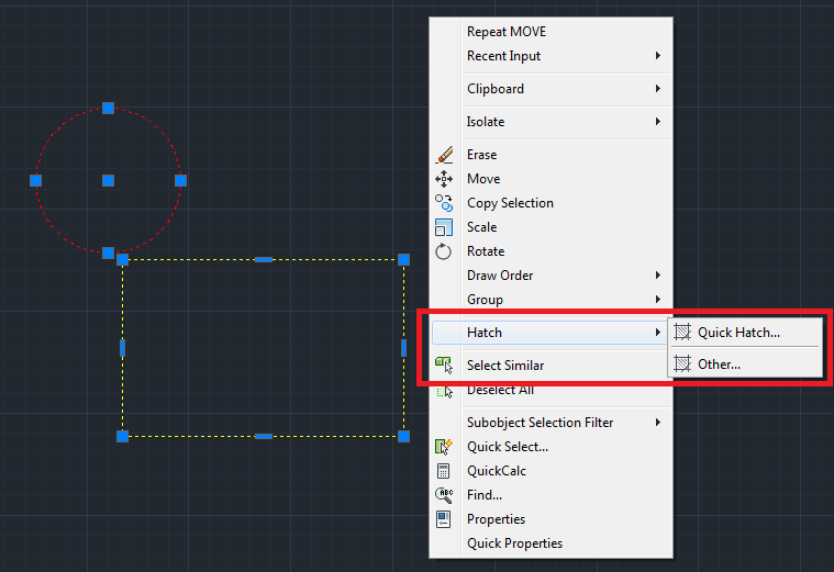 BlackBox Right Click Hatch for Autodesk® AutoCAD® allows the user to quickly hatch one or more selected, closed Curve entities, from the context ( right click) menu.