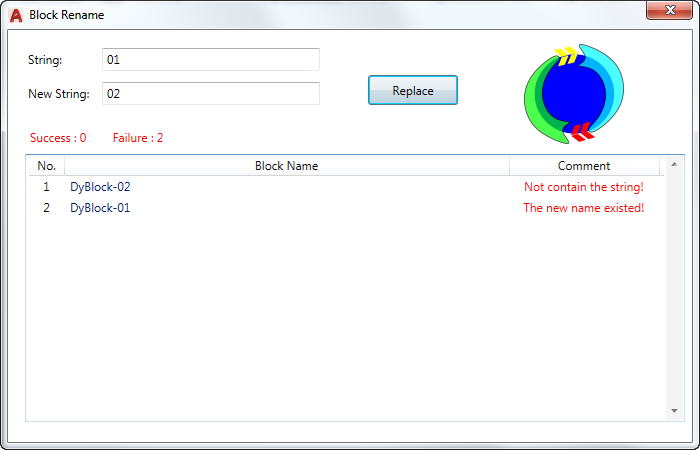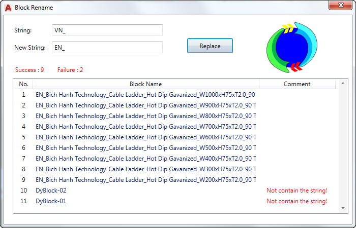 This plug-in is a quick and easy tool to modify many block names that contain the same strings., no need to rename them one-by-one.