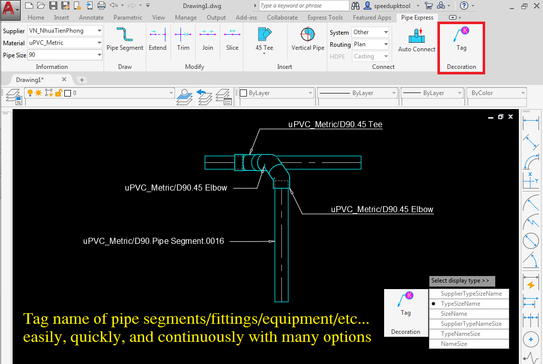 - It's easy to tag any fittings or block with a name in many custom formats.