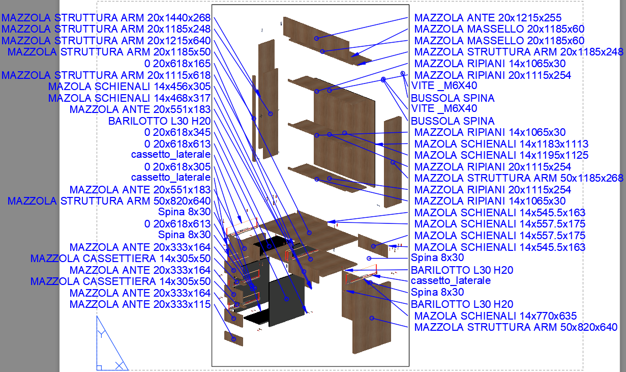 For each part in the 3D model, the visibility of the center is checked, the midpoints of edges and vertices, and leaders are made only if a visible point is found that is not obstructed by other parts.