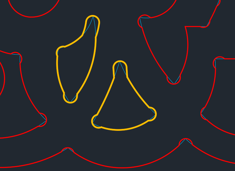 - Forms arcs on a polyline to approach a round cutter to the inner corners of the part (full cutting of corners).