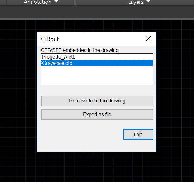 - CTBOUT that allows you to extract and export CTB / STB files, embedded in the drawing, into the CAD plot styles folder.