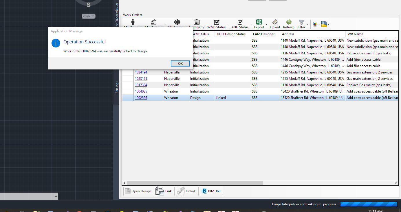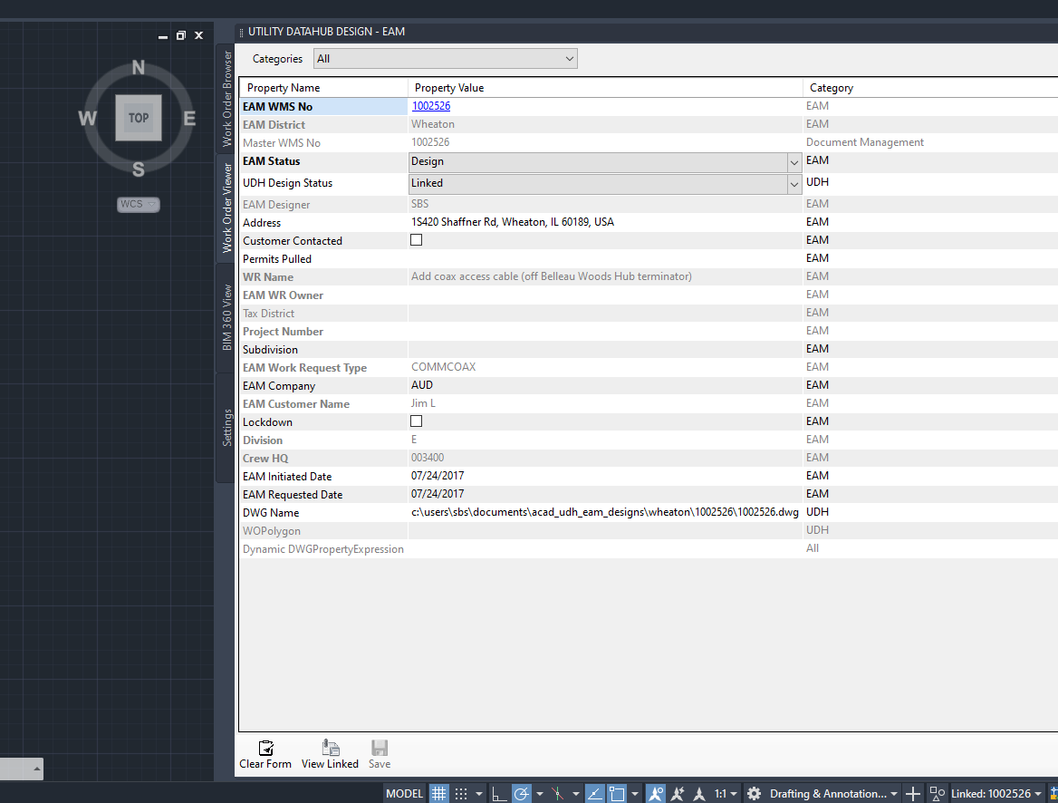 - Uses the work order data to set the design file name, create project folders, and update DWG properties
