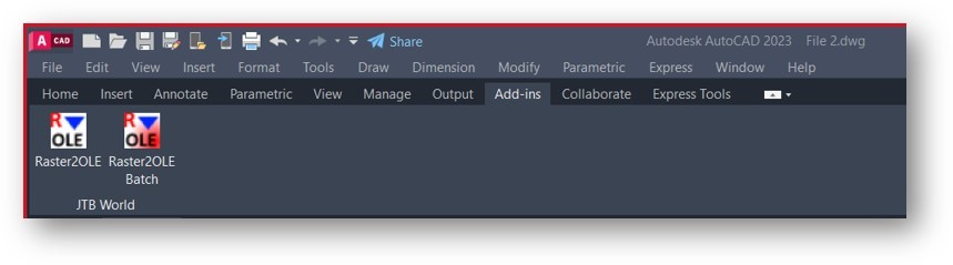 Run Raster2OLE_Batch and all raster images in the drawing will be converted to OLE objects on multiple selected drawing files.