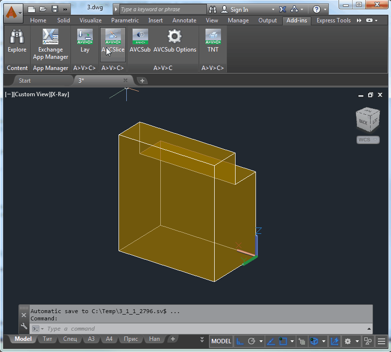 The AVCSlice plugin contains 1 command ASL. It will help speed up your 3D modeling of furniture or any products made from sheet materials. The command "slice" is usually used to separate fine details from solids.