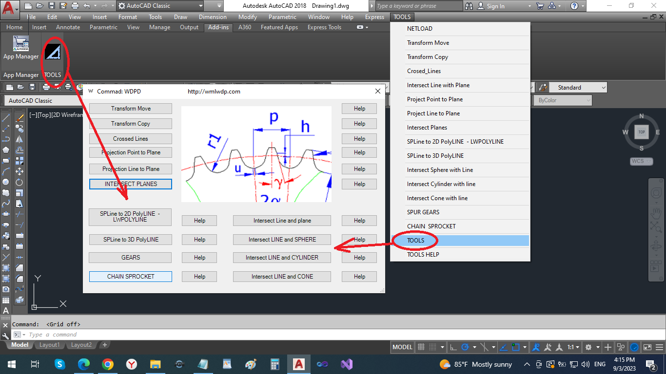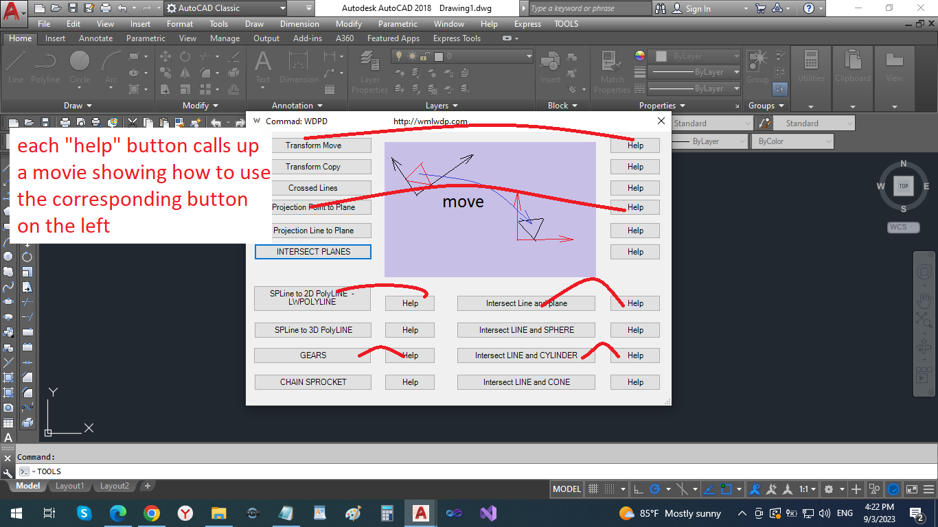 For example, we can find the intersection between a line (defined by two points) and a plane (defined by three points) and judge what to do. Added sphere, cylinder, and cone line intersection points. There are commands to convert 2D and 3D splines to polylines.