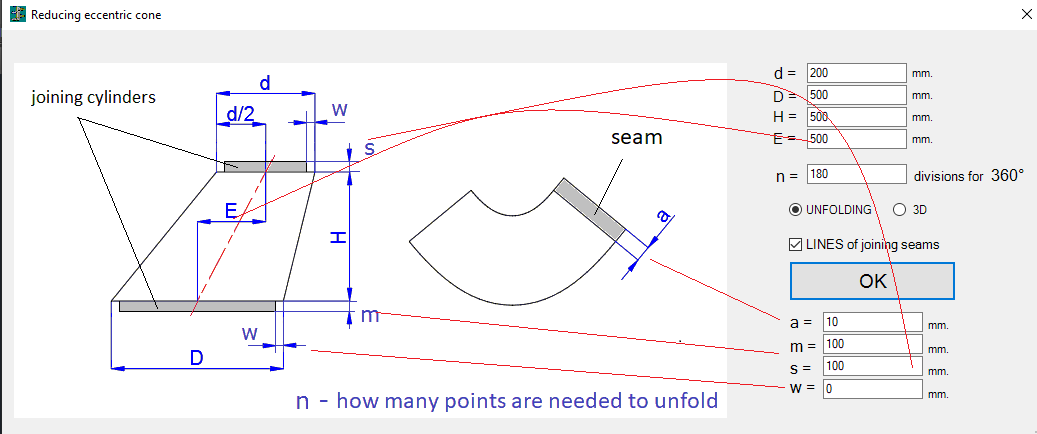Three types of transitions are introduced in this version. The unfolds are made with the additional allowance for assembly technology. There are seam allowances. The elements are assembled, not welded to each other. There is also the possibility of zero seam sizes (joining by welding).