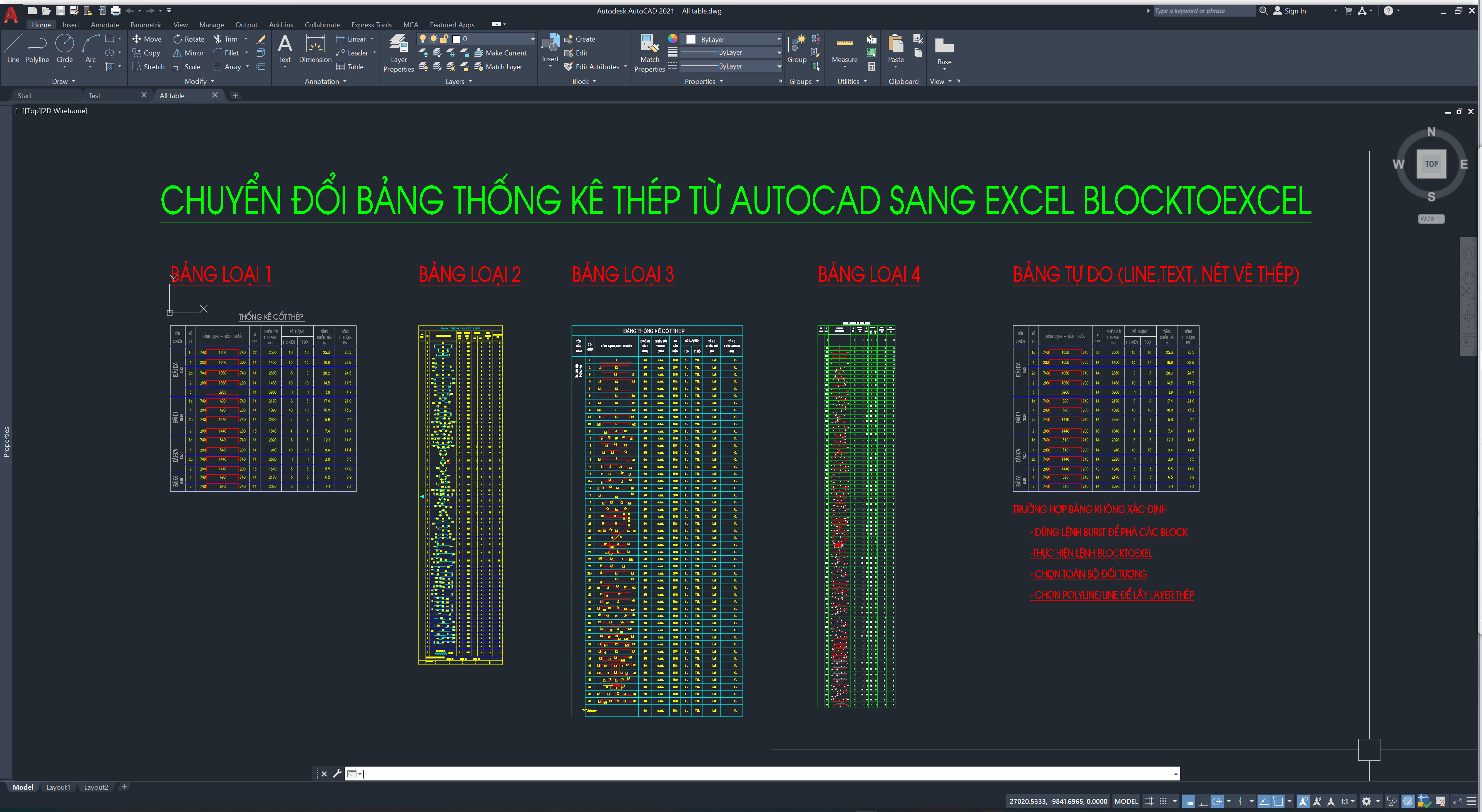 BlockToExcel - Export table (of attribute blocks or Lines and Texts) as quickly as possible to Excel.