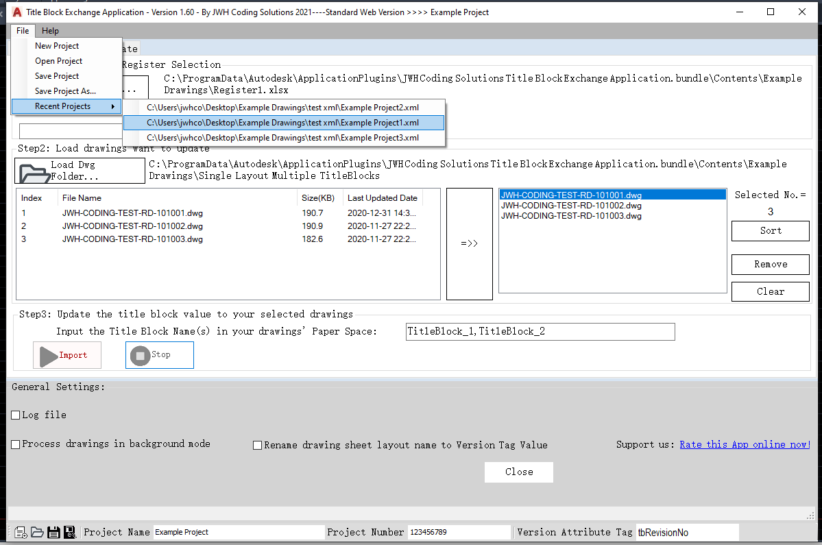 5. All above setting for the whole project / one package /one discipline /one stage can be saved as an xml project file and later to load back to Title Block Exchange Application with a click.