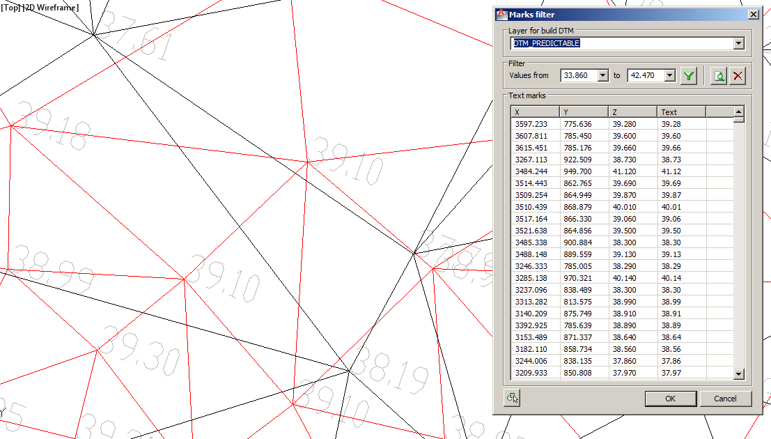 Quick Profile contains commands to create DTM of typical symbols. These symbols are used in plan drawings to specify the ground level. These may be represented by TEXT/MTEXT, BLOCK with ATTRIBUTE containing the value of the mark, POLYLINES for which the elevation is specified.