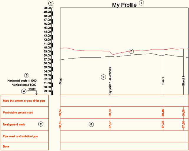 To create the profile, the profile table is drawn and rows for real and predictable ground are filled in. The application provides a wide range of graphic settings for the profile and its table.