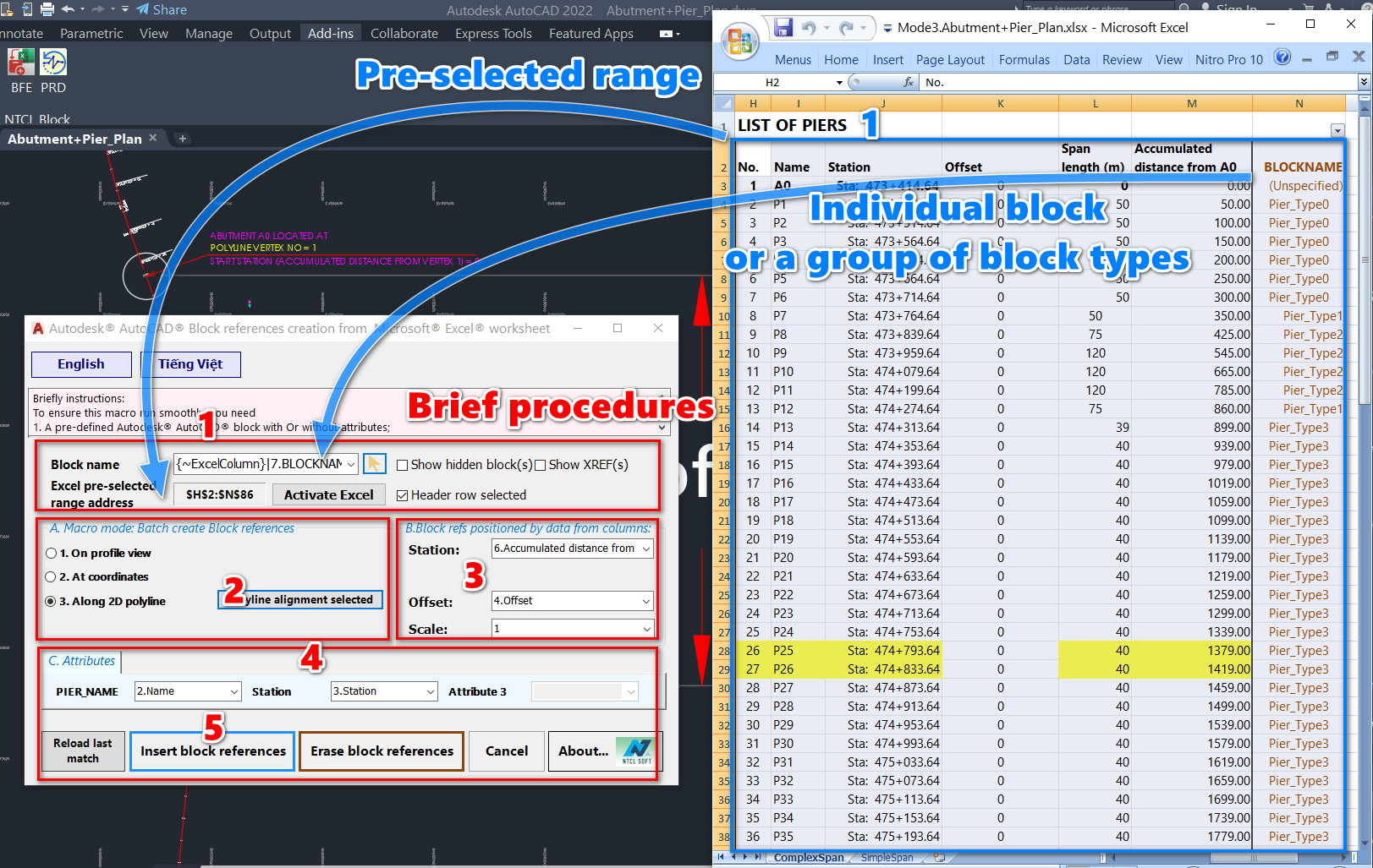"Users can now create different block types in one click. Block names are also retrieved from an Excel Column" ==> This function is amazing good. However, only 3 attributes is not enough for me.