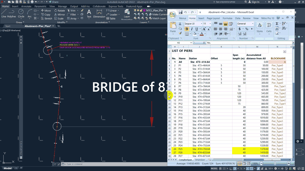 - Insert structure block refs along profile/ alignment (eg, manhole block, pier/abutment block, culvert block, traffic sign block, tree block....)