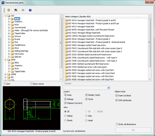 CADprofi Mechanical helps in designing mechanical and construction projects in 2D. The application contains an extensive set of standardized parts prepared on the basis of national and international standards. It is also possible to draw and edit technological schemes, as well as, hydraulic and pneumatic systems.