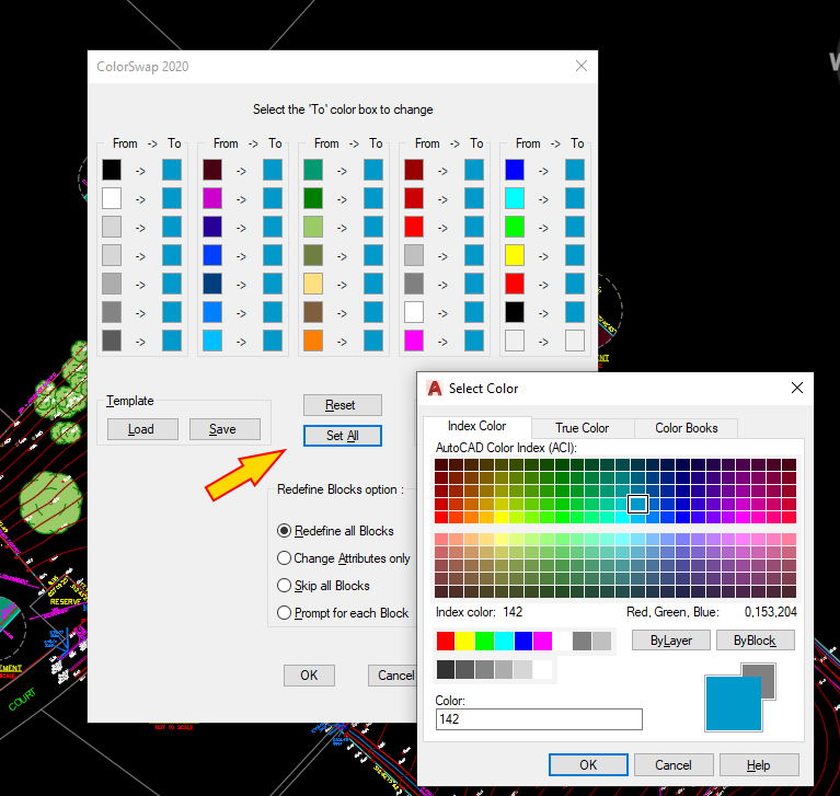ColorSwap supports Index Colors, True Colors, Color blocks, colors within Mtext, Table Cell shading, and more.