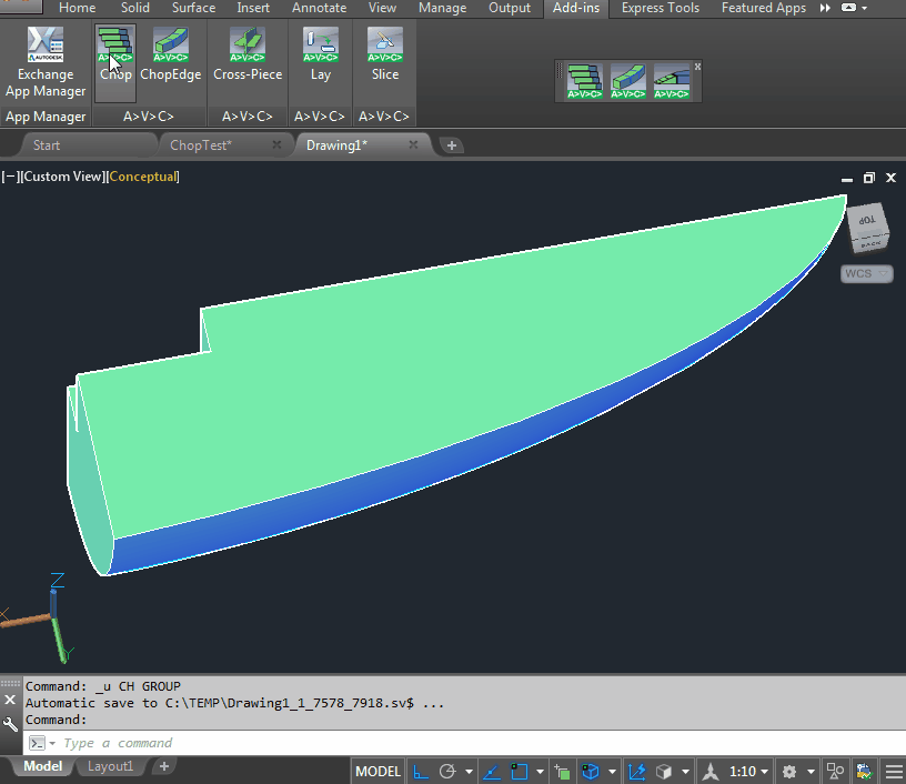 The program works only with 3D solids and does not work with meshes, surfaces, and blocks. Just like the rest of the AutoCAD commands, in most cases, the Chop command will not be able to work with solids imported from other programs.