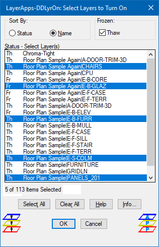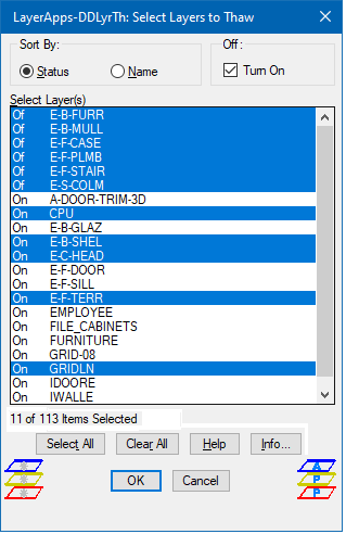 (4) DDLyrOn - Places in a list box All Layer Names turned Off to be turned On.