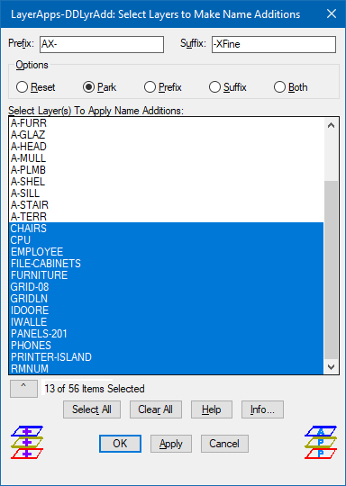 (1) DDLyrAdd - Places in a list box Layer Names to Add: Prefix/Suffix/Both.