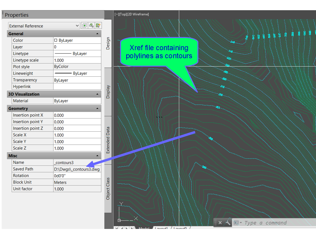 Attach your topographic polyline-contours and label them right inside the host DWG. Do you really need to triangulate your static topographic base contours as background? Sometimes you can't, especially since most topographic backgrounds are huge. This is useful for non Autodesk® Civil 3D® DWG's without the need to convert the polylines into a Civil 3D TIN Surface.