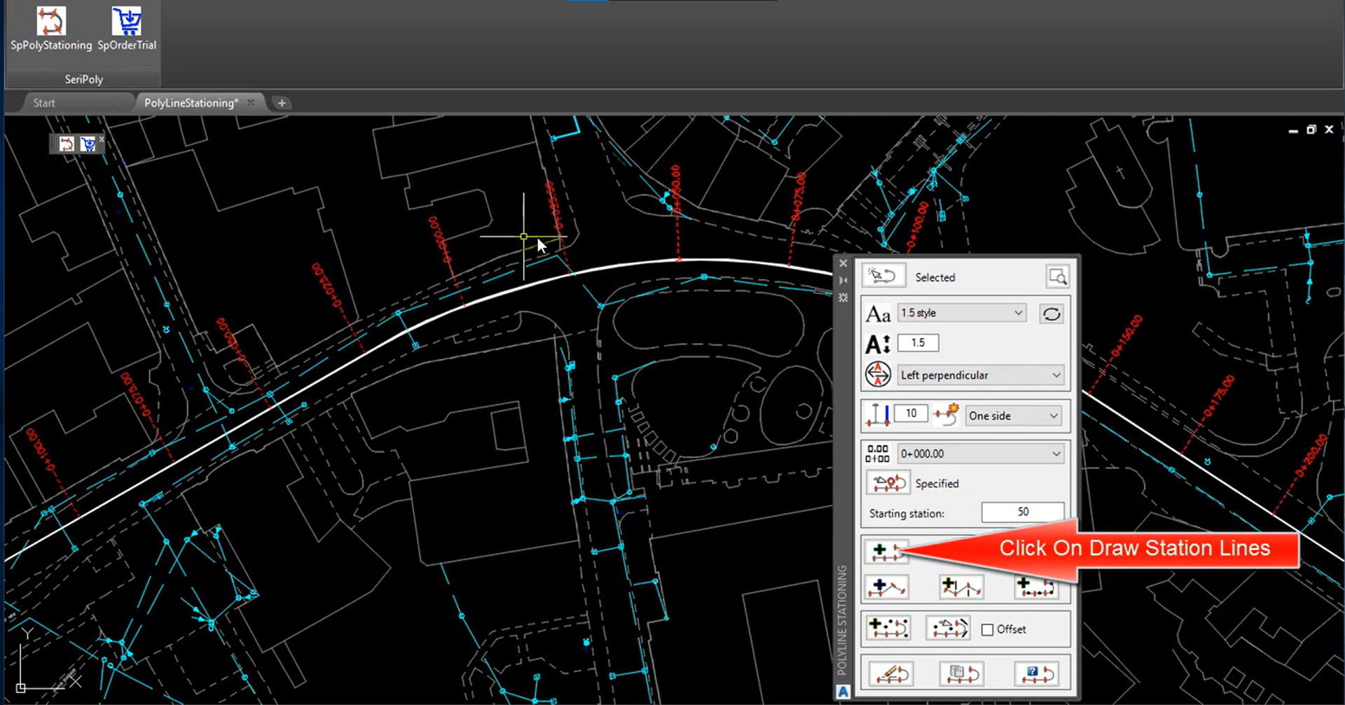 - Effortless Station Line Creation: Generate station lines automatically on every vertex of your selected polyline, saving you time and effort in manual drafting.