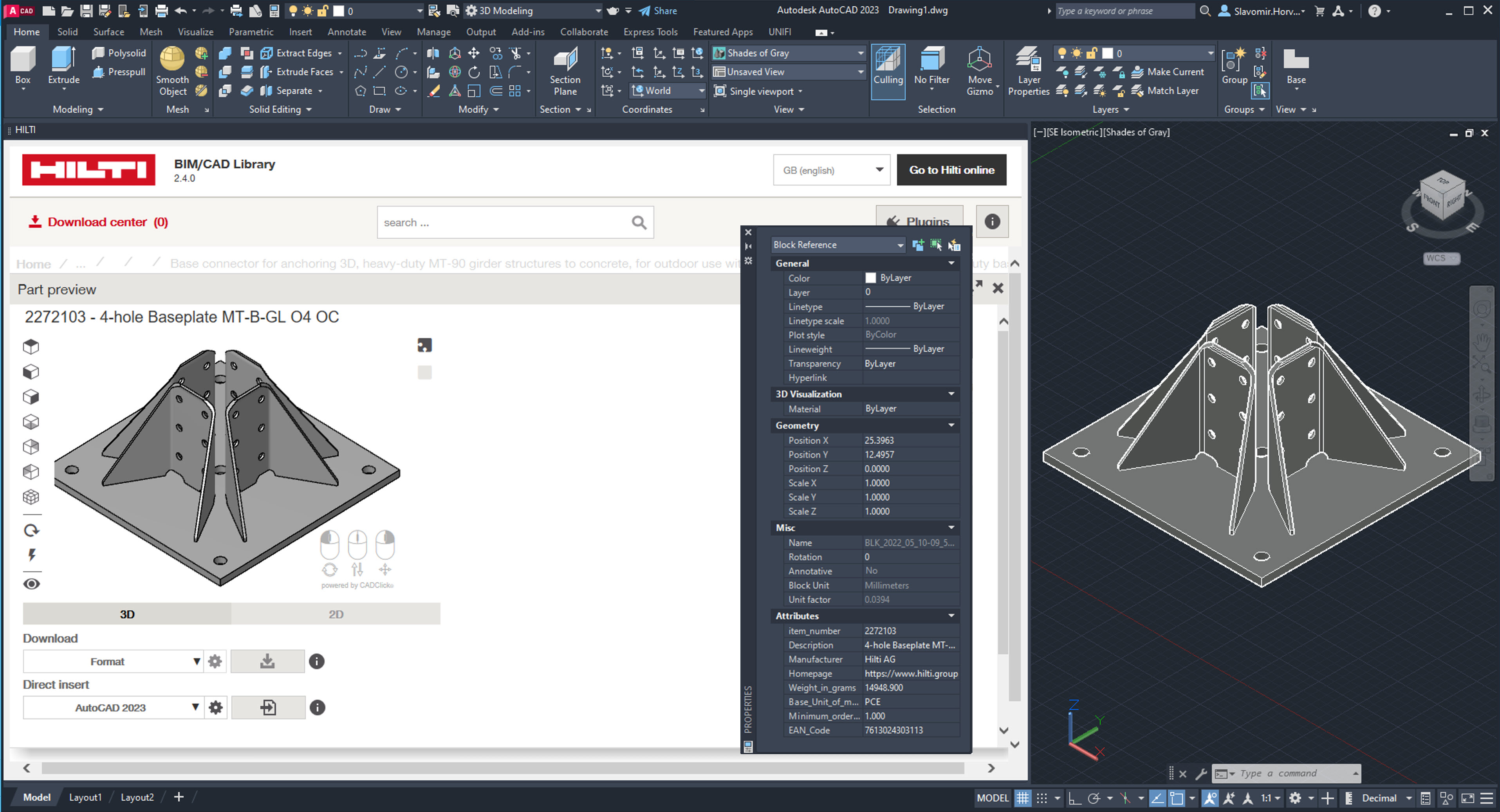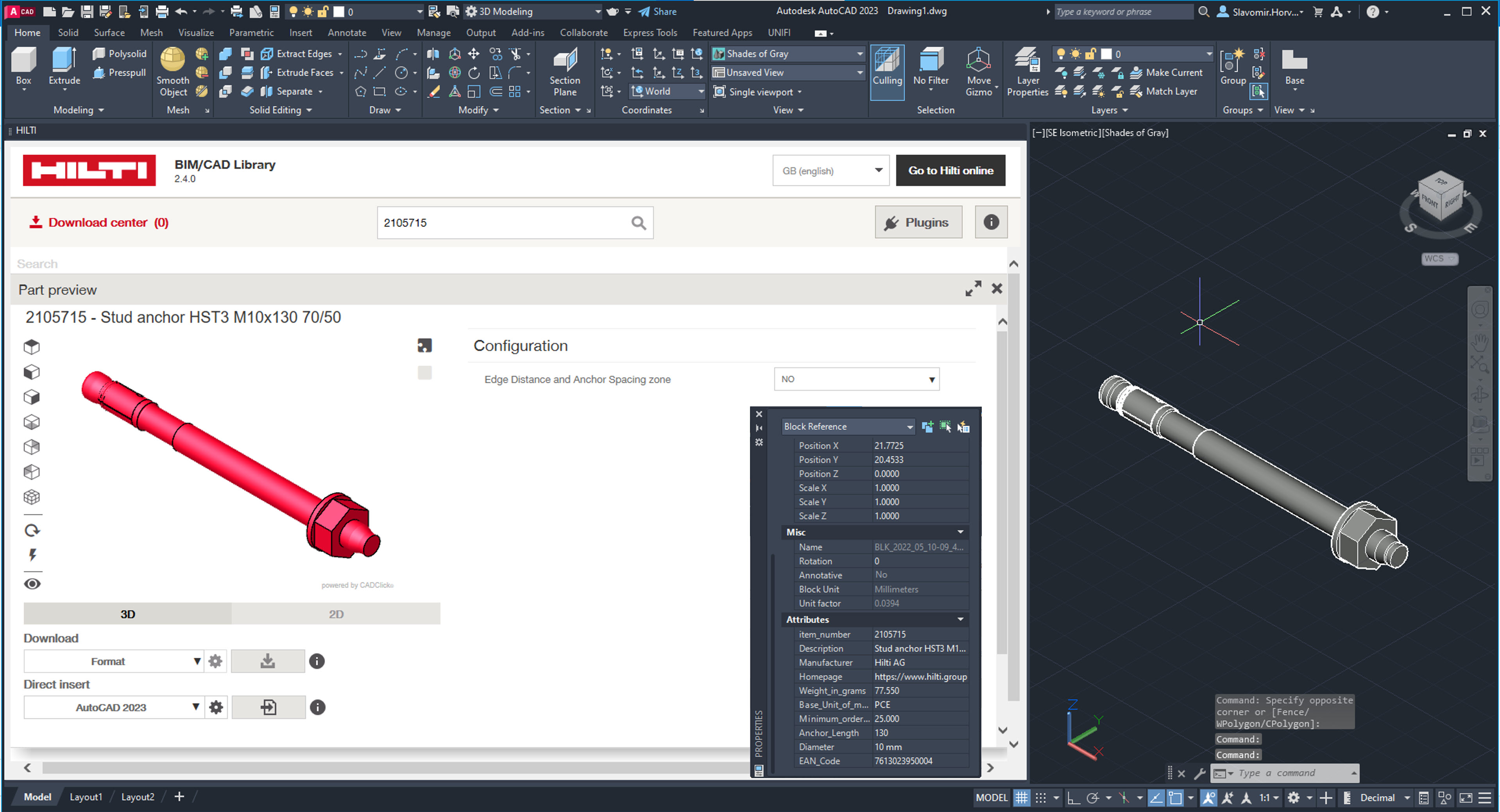 This Autodesk® AutoCAD® plugin allows you to access the Hilti BIM/CAD library and download BIM/CAD objects.