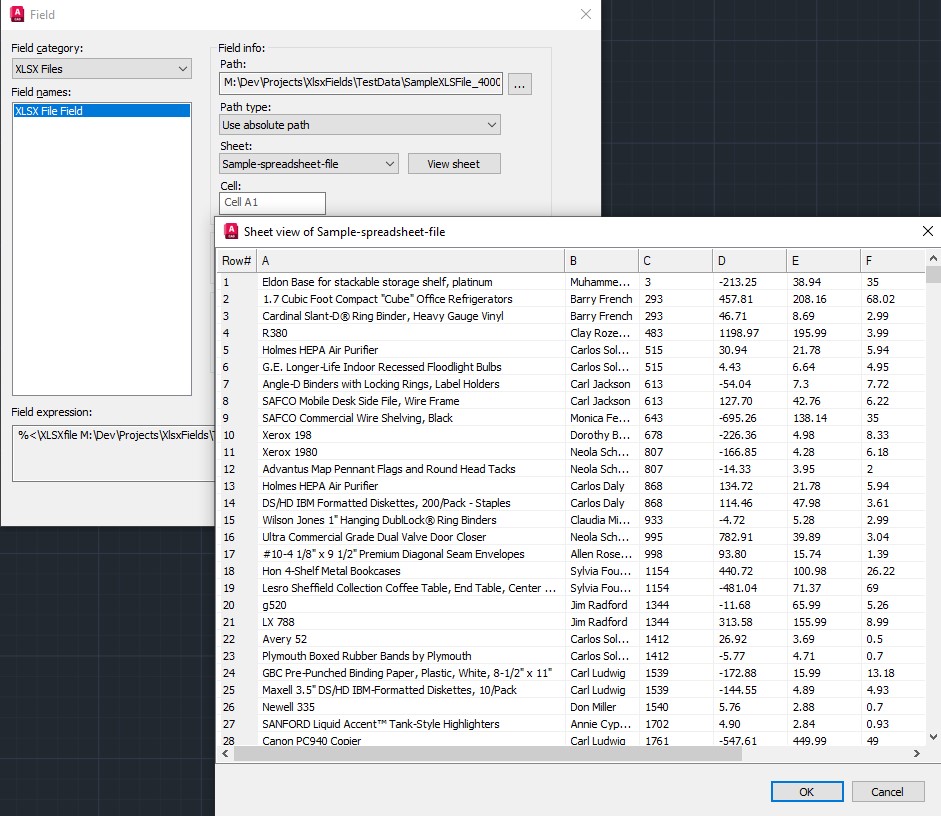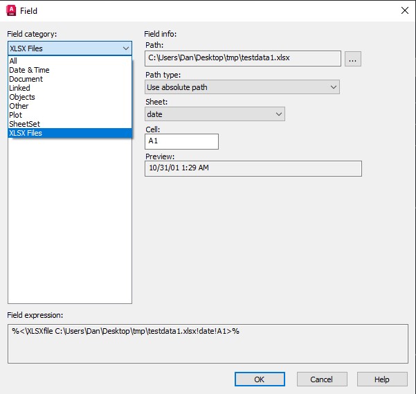 A fast field evaluator for . XLSX files. Excel is not required to be installed. This Field command can be used anywhere in Autodesk® AutoCAD®.