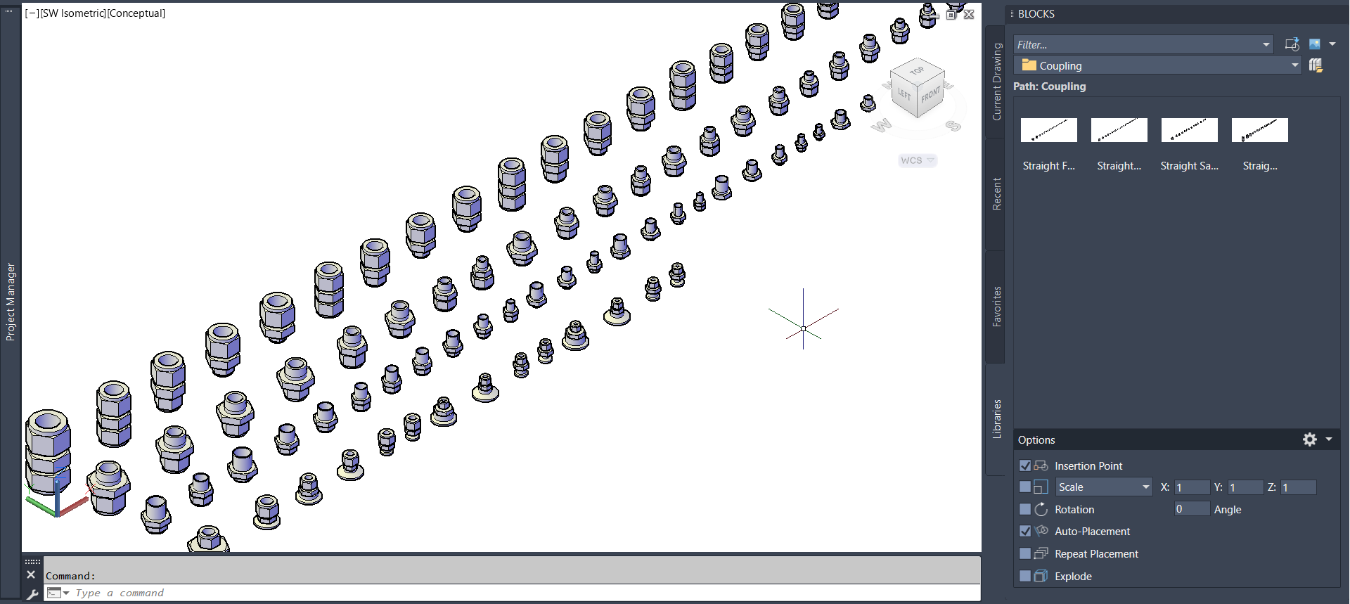 It is comprised of common Fittings, Valves, Regulators, etc. from Swagelok (block-based content). If you’re creating a new project or just integrating it as a part of the whole project, this catalog will be a great starter.