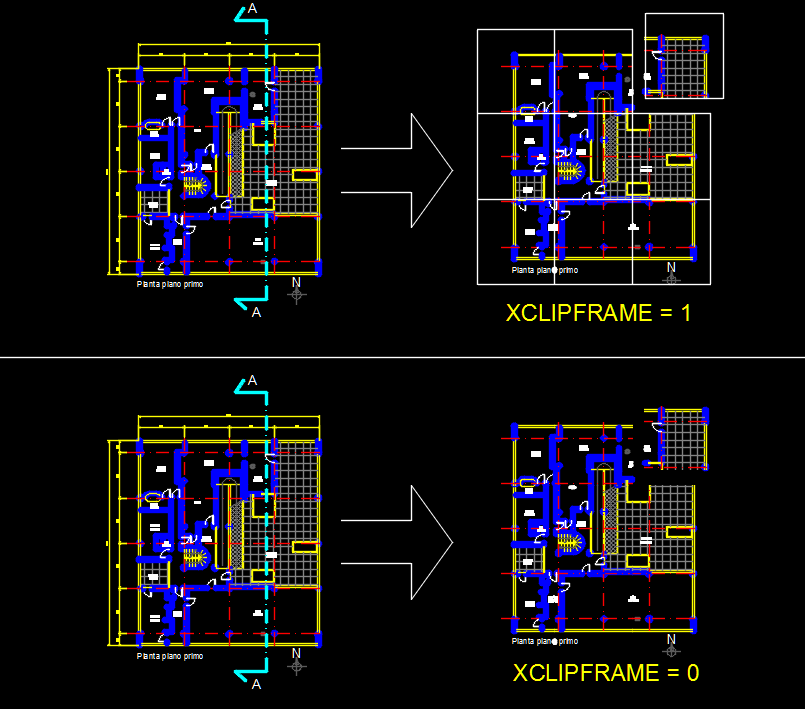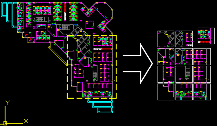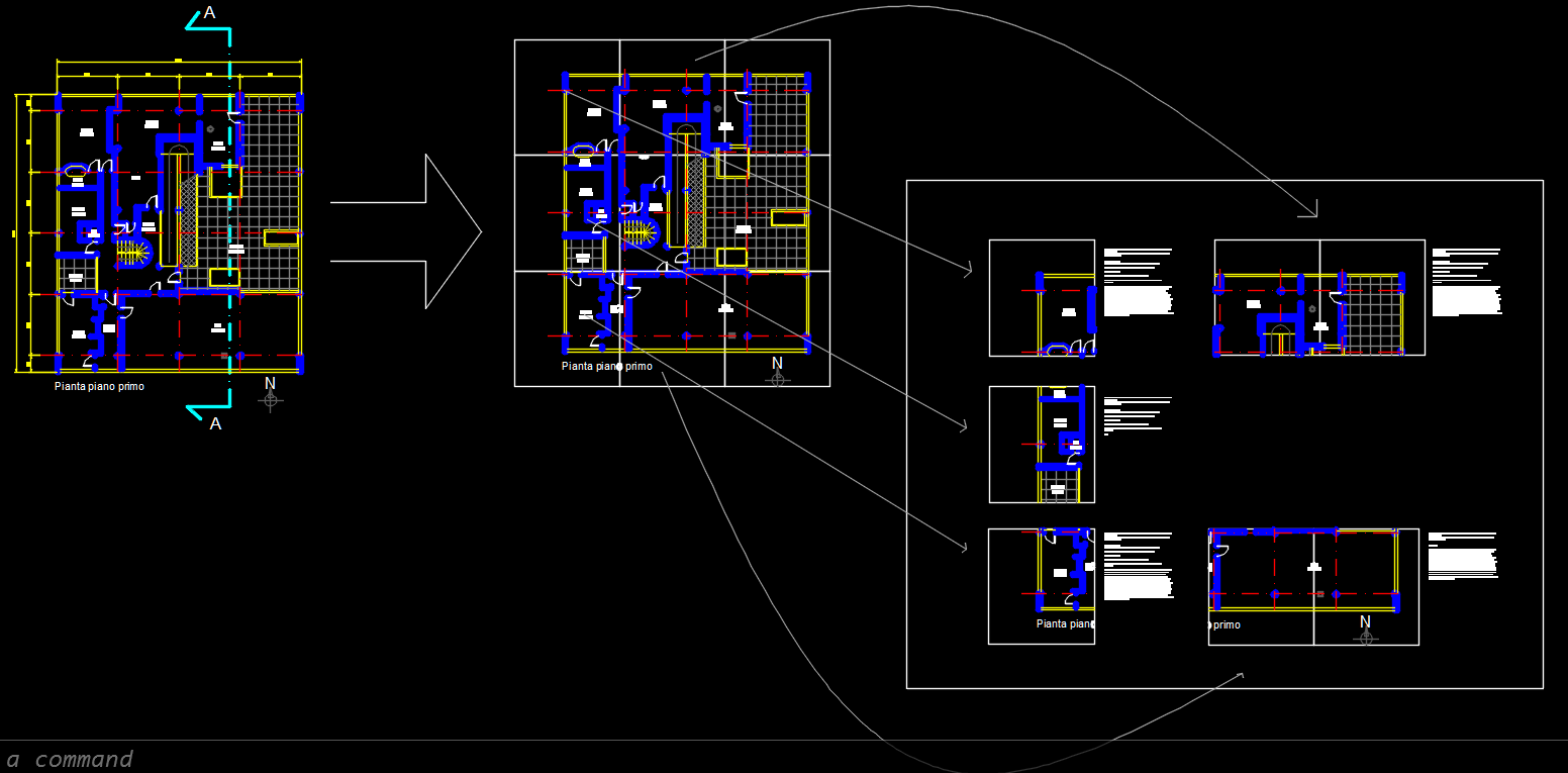 Taking advantage of the possibility of cutting out a block, the program automatically arranges a certain number of block instances, each cut in such a way as to recompose the appearance of the originally selected objects.