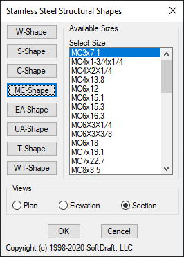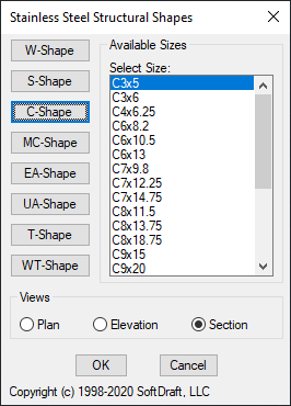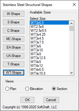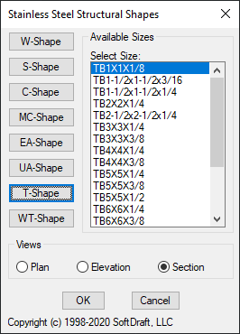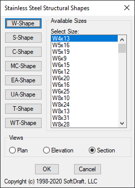 Stainless Steel Structural Shapes include W-Shapes, S-Shapes, Standard and Miscellaneous Channels, Equal and Unequal Leg Angles, T-Bars, and W-Tees. All shapes are created from a single polyline and made into an Autodesk® AutoCAD® block when inserted as section views. All shapes in the section view are parametrically drawn before placement and converted to a block for easy placement.