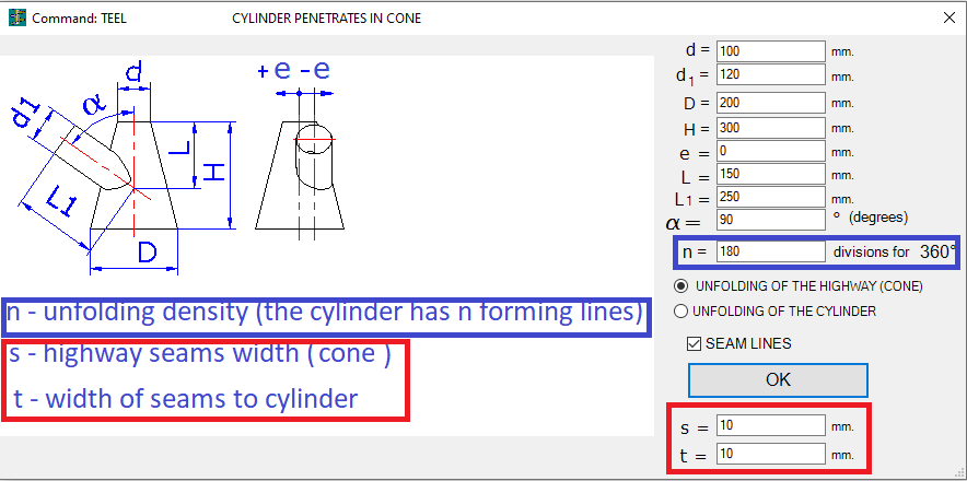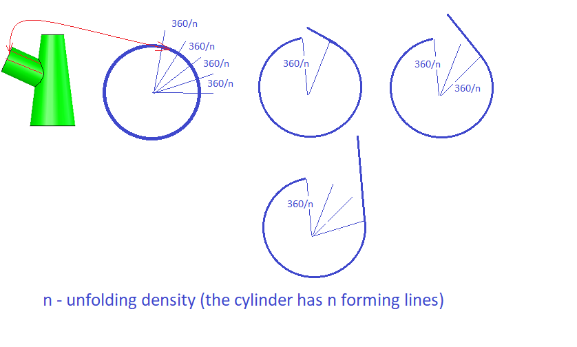 This application makes the unfolding of two types of pipe elements: A cylindrical pipe intersects into a cylindrical pipe or a cone-shaped pipe.