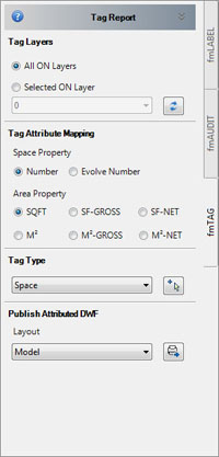3. fmTAG™. DWF tools used to publish room number & area data to an attributed DWF file for the Evolve FM CAFM system, or for standalone use.