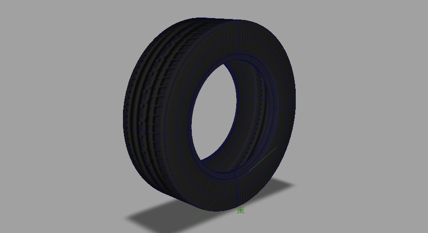 The resulting Tire would have the pivot in the center of the tire, so that it can be placed accurately to the correct wheel center locations. To make the data lighter, threads are mimicked using a bump map texture.