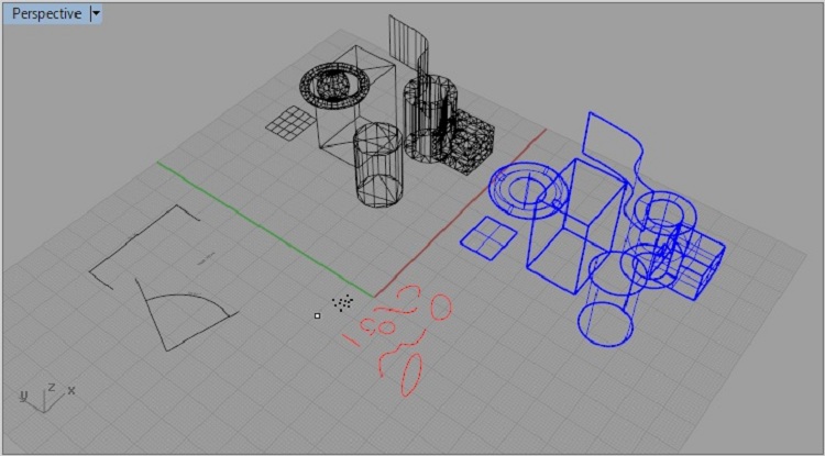 Surfaces, Solids, Curves, Meshes, Point Sets, Points, Render Lights, Materials, Layers, Blocks, Group, Dimensions. Object visibility, Layer visibility, etc. are also translated.