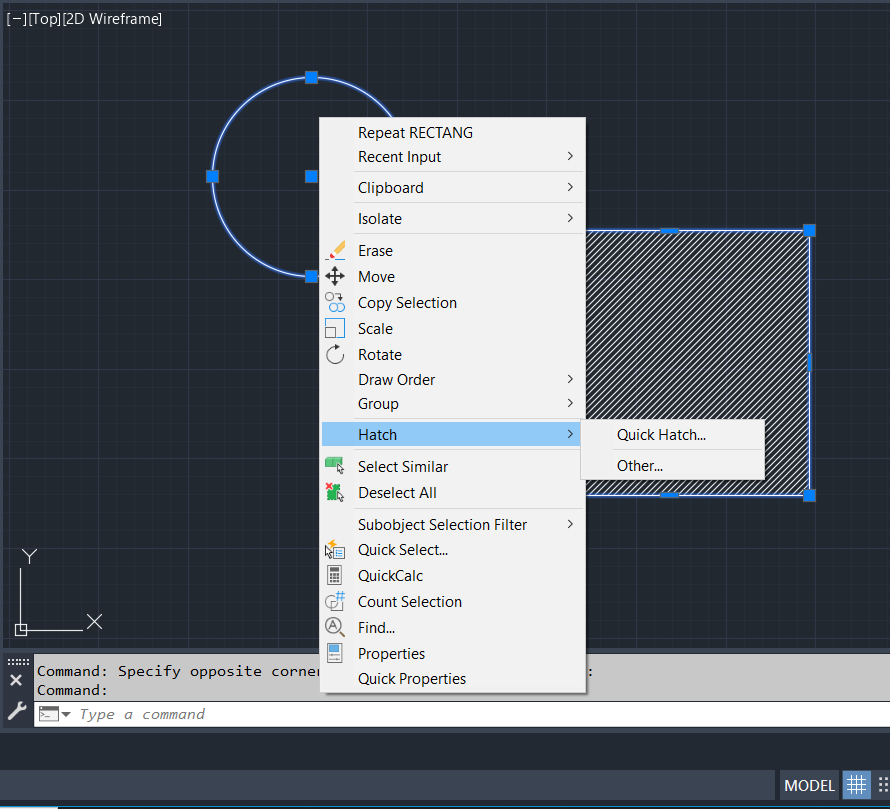 BlackBox Right Click Hatch for Autodesk® AutoCAD® allows the user to quickly hatch one or more selected, closed Curve entities, from the context ( right click) menu.