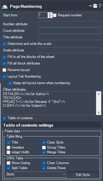 Using this plugin, you can quickly renumber the sheets. If you have to manually loop through all drawing sheets to write a sheet number, this program will radically speed up your work. Just call the command PNO (PageNo), and it will find the blocks with the attribute "PageNo" and would put numbers. You can use sheets (Layouts) or fill blocks in the model – the program will work in both cases.