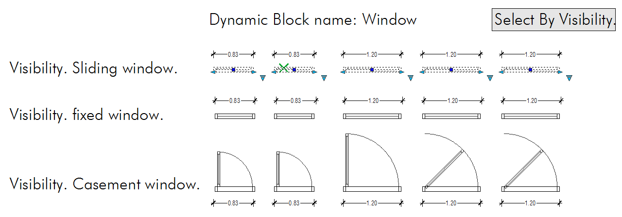 Selection of dynamic blocks by their VISIBILITIES or their LOOKUPS.