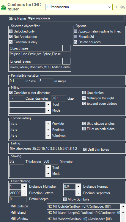 - Already configured 8 CNC styles for different naming layers, different modes, and machines.