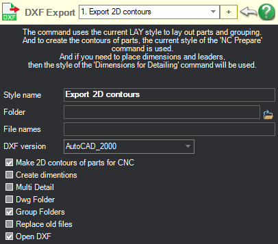 The program can interact with the A>V>C> Properties Palette. The name of the part and other properties of the solid can be used in the title, in the name of the subdirectory, and in the dxf-file name.