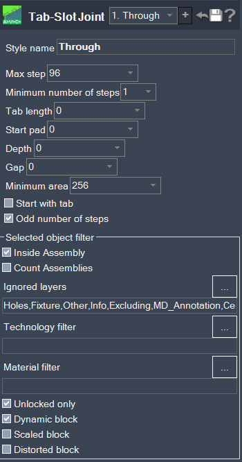 The Tab-Slot Joint program (TabSlot command) helps to model one of the typical connections of parts. A row of evenly spaced rectangular tenons (tabs, studs) is created on one part, and slots (dodoes) are cut on the counterpart part. Such a connection is used in furniture, POS and building products, boxes, stairs. The connection allows you to connect two parts from any flat sheets: steel, wooden board, MDF, chipboard, plastic, cardboard, sandwich panels and composite materials. Usually, after joining, the parts are fixed with glue or welding.