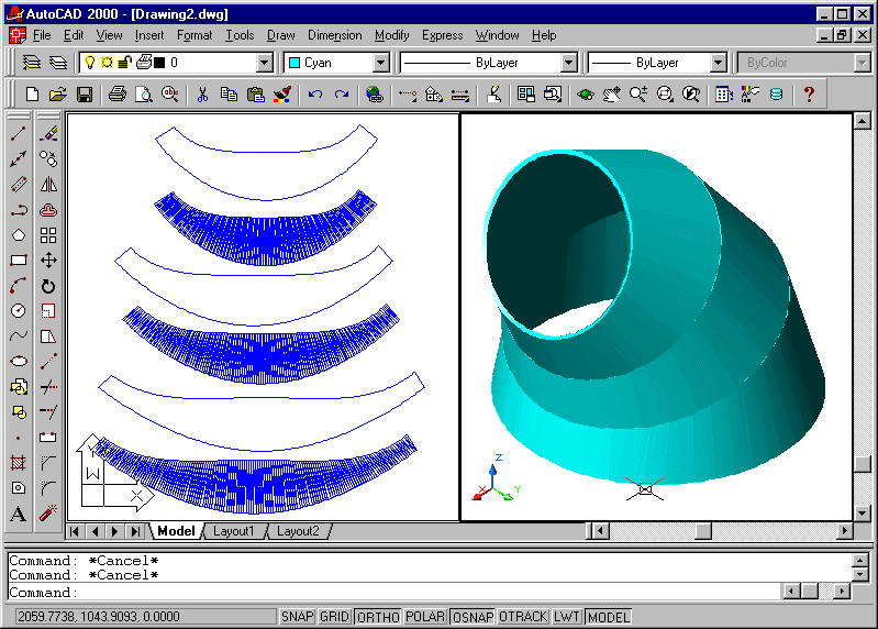 Metric Units/Imperial units: the program automatically sets the units according to the units used in the current drawing session. After finishing the input of parameters, the program draws the 3D object and the respective development.