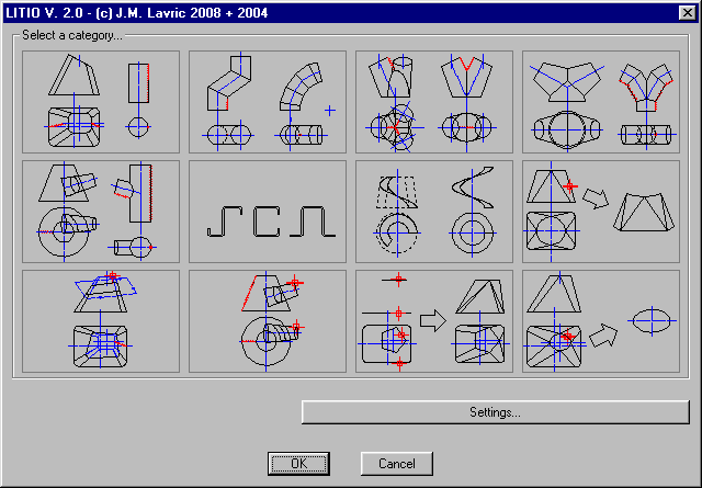 LITIO 2.0 is a sheet metal program that calculates flat (unfolded) sheet development of ducts, rectangle to round transitions, cylinders, cones, pipe intersections, connections, bifurcations, elbows, etc. for HVAC, hoppers, cyclones, dust extraction, ducts, conveying systems, silos, piping, etc. to draw your sheet metal developments directly in Autodesk® AutoCAD® R2000 and later (no need of DXF conversions).