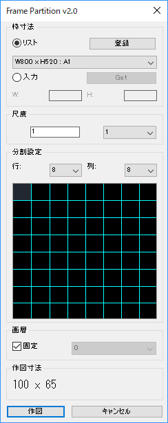 図面レイアウト用の分割枠を作成します。