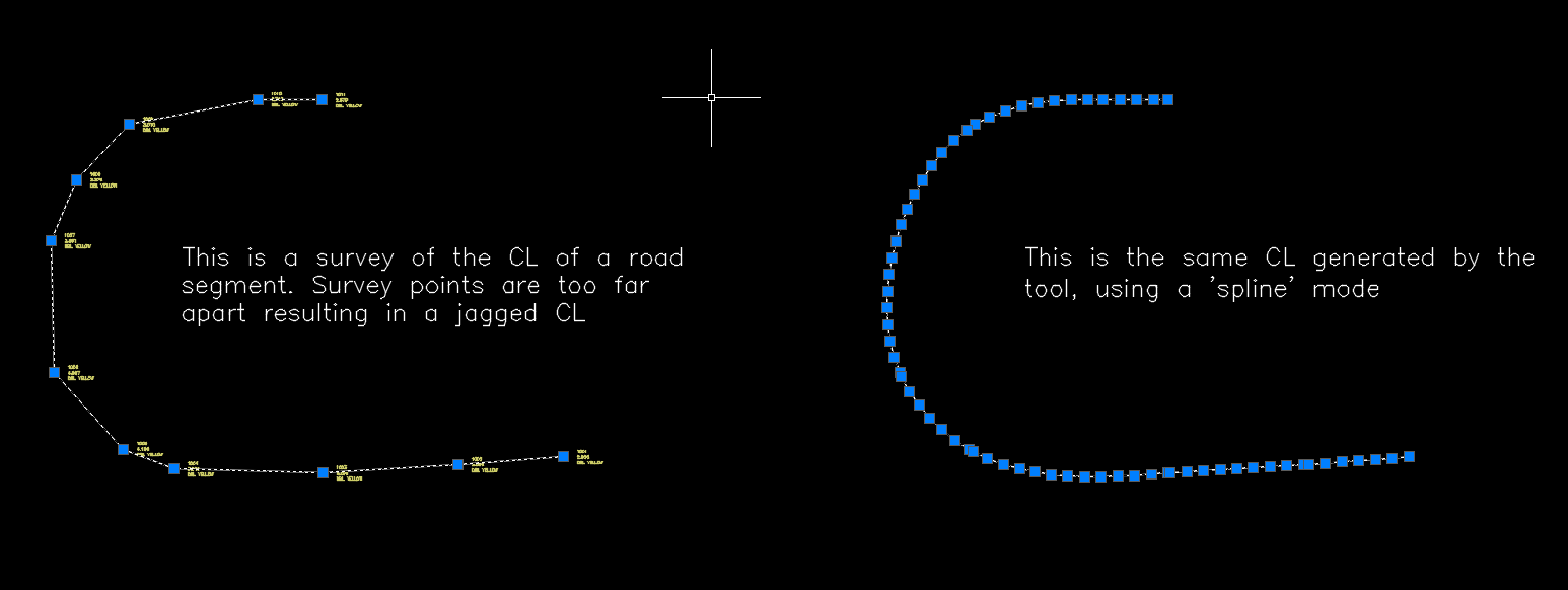 Attempts to improve upon a sloppy field survey in certain cases by creating a smoothed-out version of an original 3d polyline. It works by inserting vertices at user-specified intervals. The elevations of the added vertices are interpolated linearly from the original 3D polyline.